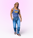 Here are some of the additional clothing pieces in the Urban Survivor's outfit. The tank, jeans, and shoes. I could not get the puff vest to fit well. Too bad. Its really cool looking. The jeans suffer from the crotch issue which occurs when fitting older products. But this is still utterly viable for G8M The tennis shoes are some of the best I've seen, even amongst Gen 8 native stuff.