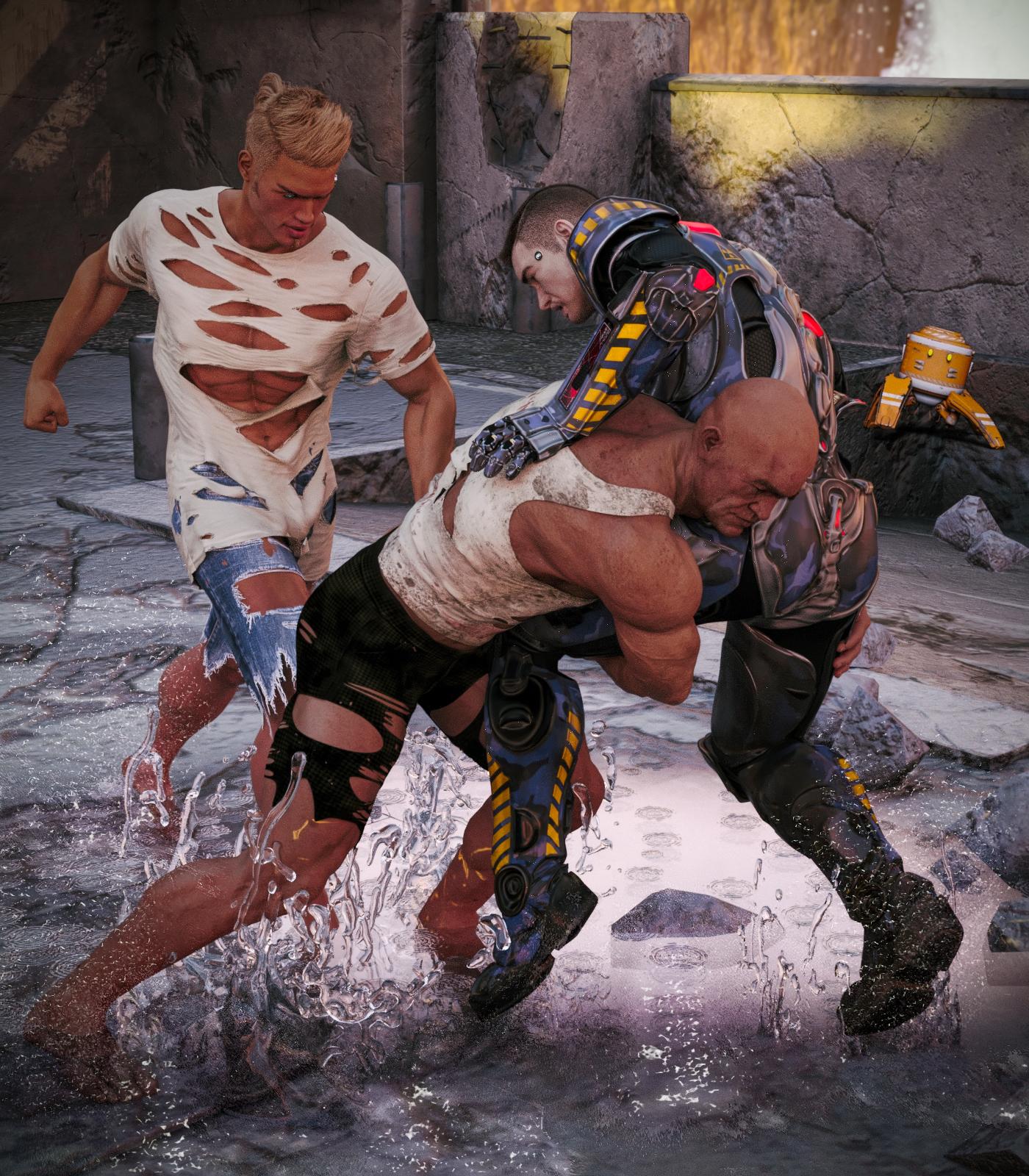 I used Smay's dForce Torn Clothes for Genesis 8 Female on the two Aesir guys... This is about the first time we've seen another Aesir, so there he is. A clone like Boyd. Only much older. Probably from the 60's or 70's.