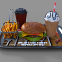 Here is a quick screenshot of a few of the lucious food items, available at the Burger Restaurant. Notice they serve the finest Indian spices.   The basket of fries is interesting. We don't do that where I live, so just curious if this is common somewhere? the only thing I wish, would be for a premade tray with all the items nicely arranged. There aren't any napkins, or stuff you might normally see on a fast food tray. And coffee, is a more typcial breakfast item. You more likely would see soda with a burger and fries and some sort of packaging. There are a couple items not featured, a wrapped sandwich and an icecream cone.