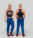 It fits well on Boyd, and would suit a character who needs roomy clothing for action moves, or a female character. I see outfits like this at the office for women all the time. From the waist up, the look is quite common and popular.