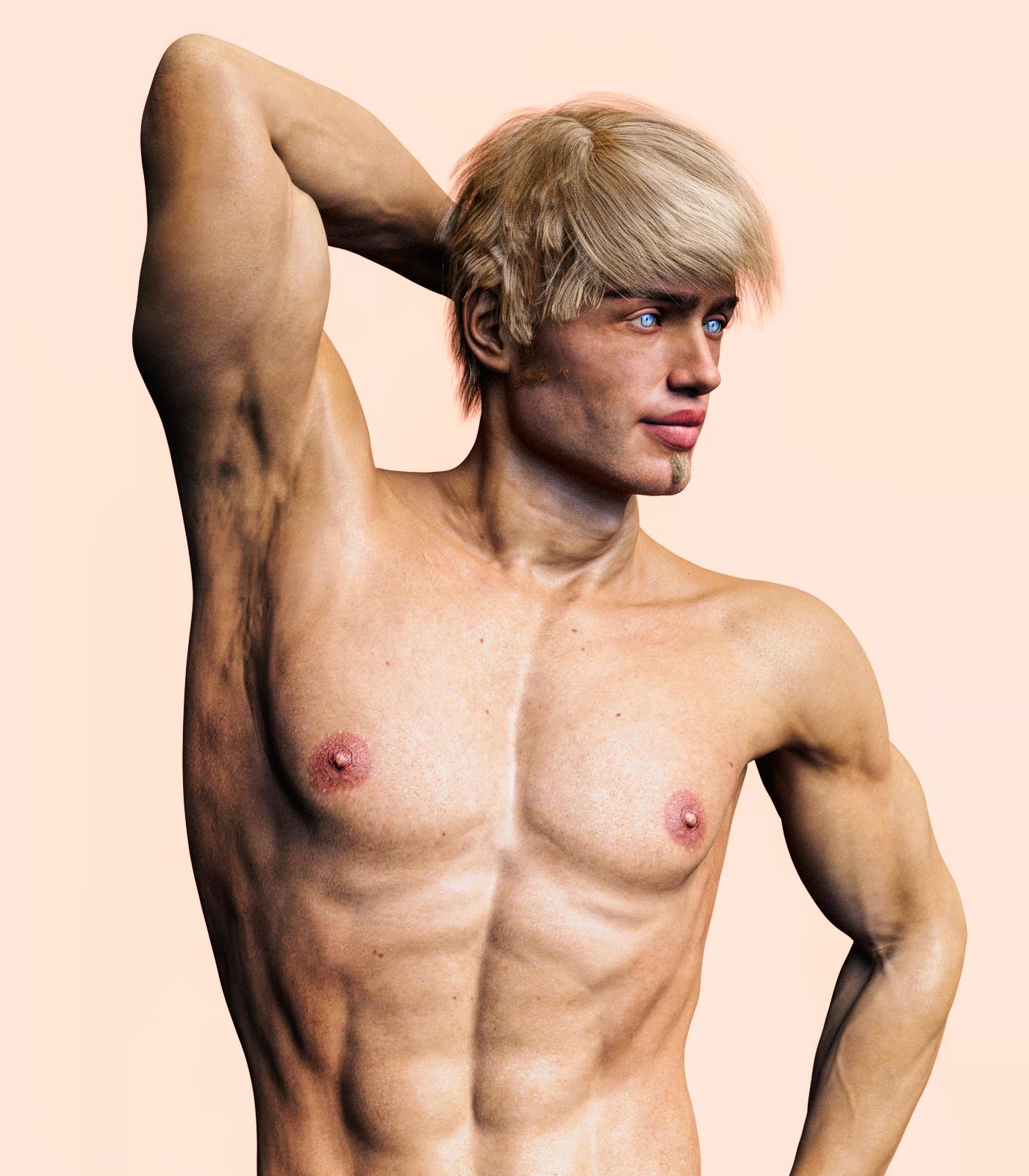 I think this will be a great figure to mix and match with. The Matte, toony skins will be great for cartoon renders, and the figure itself has a very nice shape, with good eyebrows and lots of options. The hair I used here is: Derek hair fo G3M. For some reason, I must've forgotten how nice it was. Anyway, it works for a gi joe style figure and hair.