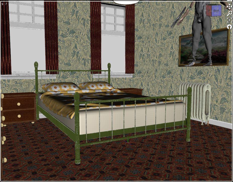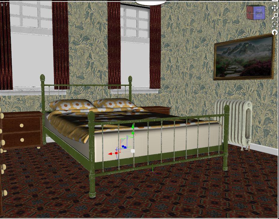 The cameras make it easy to view Harwood, and boy the interior is even cooler than the outside. I've chosen the Spare Bedroom for my scene. The good news, is that you can load just the furniture for the room that you want. I'll probably have to texture minimize this as well pretty soon.