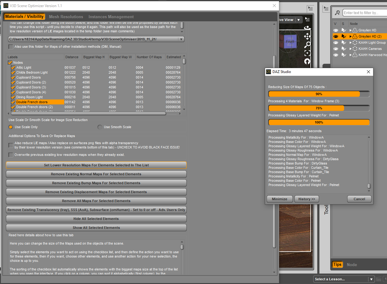So I saw a pic on the internet of a person sleeping in a bed, with two gray aliens peeking in the window. So I decided, Owen was going to be that person, and Harwood House... Would be the locale.  First things first.... Scene Optimizer needs to happen on the whole thing including the aliens. Each alien is 4K, the wall frames are all 4K. So we shall minimize before we even use it.