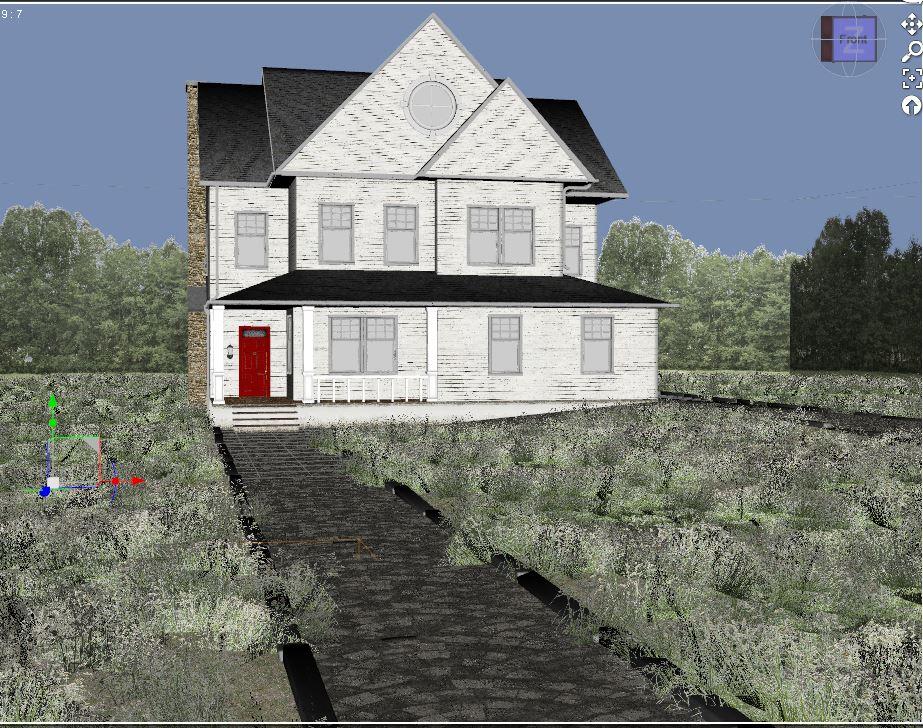 Harwood, is a fantastic environment, with all sorts of detail. Just look at the exterior. I feel bad having to delete it, but we are going for an interior shot, and won't need the outside. Owen and the aliens are loaded... But likely somewhere inside Harwood house...