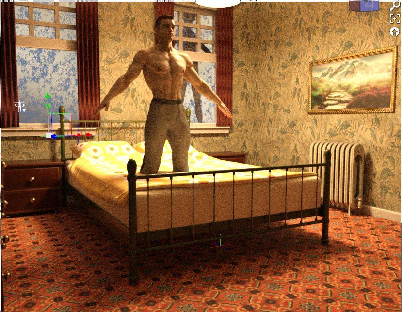 Since there is no way to teleport or find your way around Harwood, I recommend unparenting an item from the room, copying it's pose, and pasting it to your characters to teleport them to the proper location. In this case, I took that painting off the wall, and pasted its pose  to the aliens and Owen. Instantly teleporting them from the bowels of Harwood house, to the spare room. The aliens end up about where the painting is... .Nice.