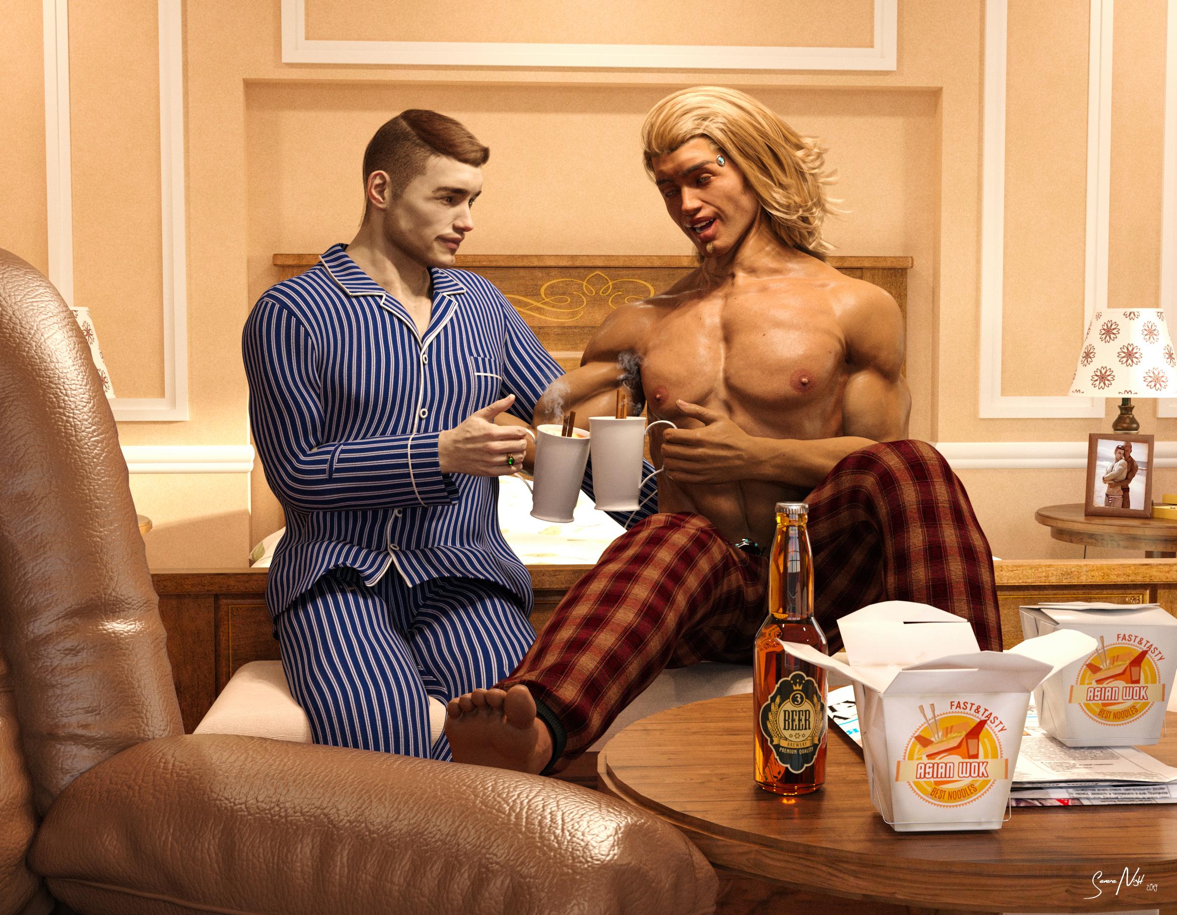 (There is nothing naughty here, I keep most of my imagery PG, and they are wearing Shorts as this is a public bath.)