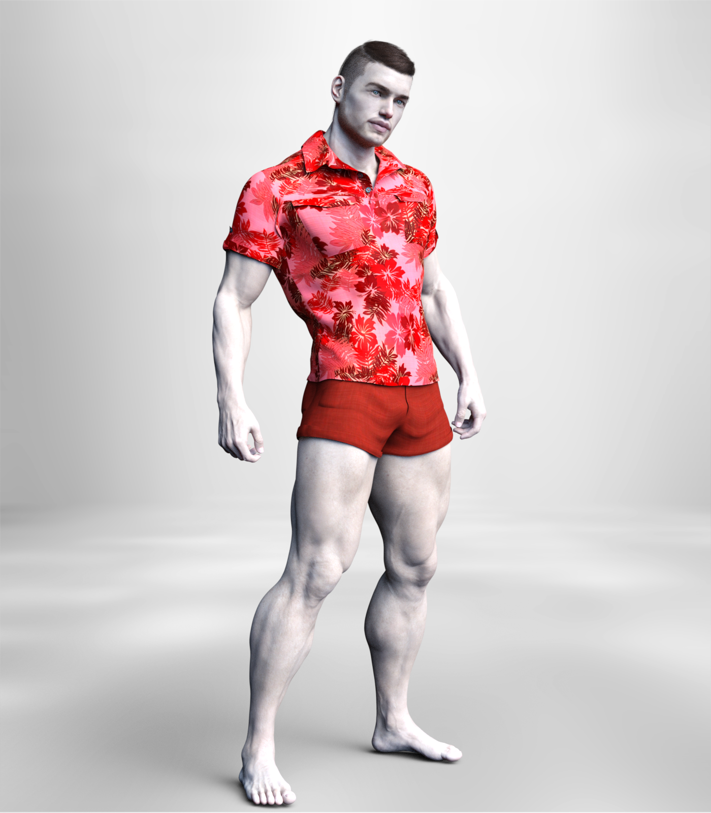 DZ G8M FaZhion Set 8 was released today. It is a pair of shorts, and a nice shirt with a cool retro feel.  Tons of mat zones, and a very nice masculine look and feel. The textures rely on fill shaders but I think this set could really shine even more with better mats (such as stripes on the shorts), logos and seems and stitching details. I think that is dzheng's one weakness... Lack of really good textures. Nevertheless, I do like this set, in fact, I love the shaping and modeling. I may try my hand at making textures, since it really could use them. Nevertheless, this is my favorite of his recent work.  The blue is his default texture. The Red: I tried to do something with red shaders... .just to show the variety of mat zones. But... Alas, fill shading I think just doesn't do this set justice.