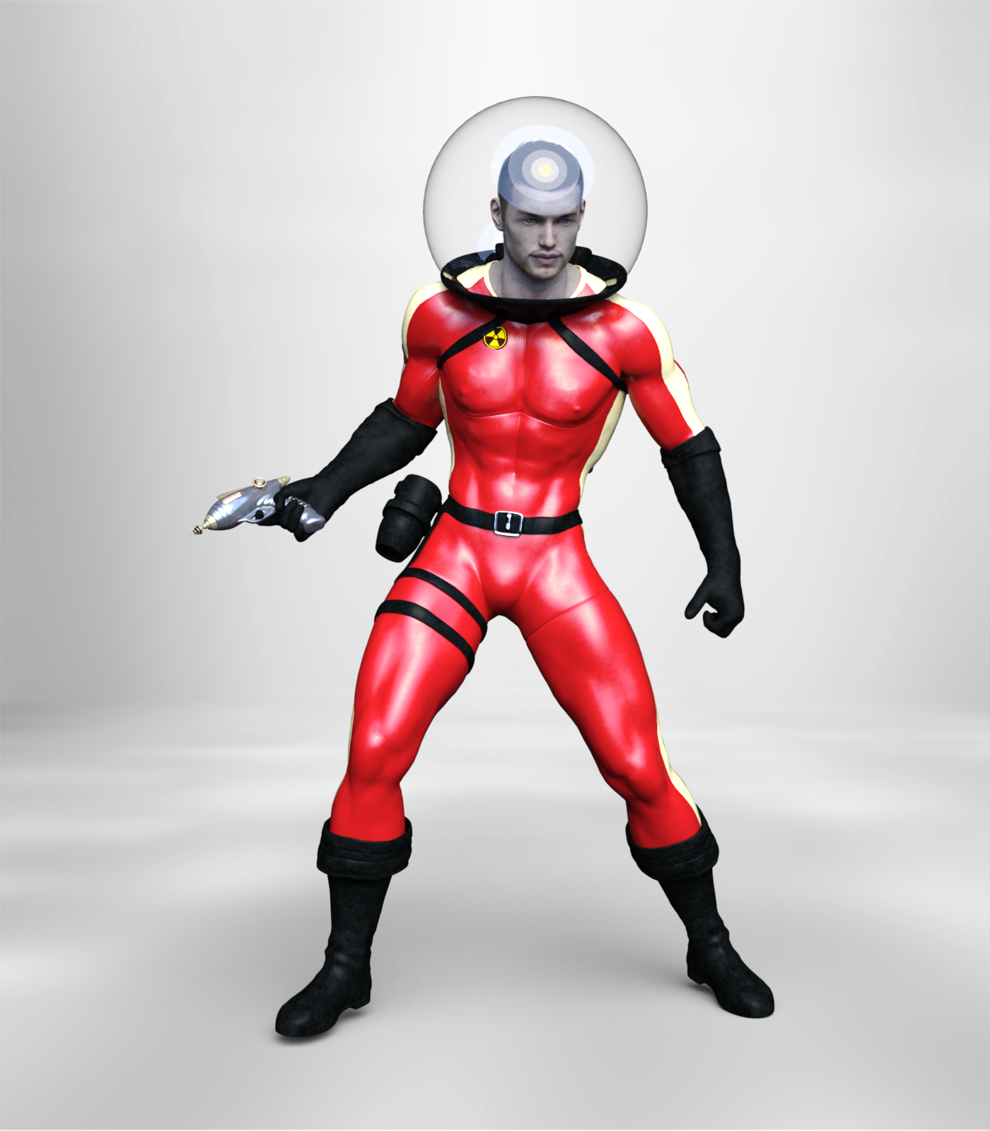 Sci-Fi Retro space suit with red texture from expansion. I like it. Reminds me of the old pulps of yesteryear and flash Gordan. Boyd and Owen will definitely be wearing this in the days to come for some cheesy old-fashioned science fiction scene. the gun parents nicely, and overall nice fit.