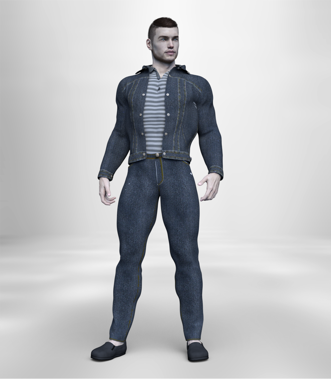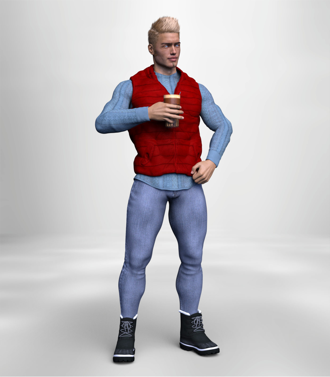 The vest is very tight, and so I recommend adding a push modifier. When you do that you'll need to hide the buttons, and zipper. The jeans, are painted on but the set is useful for much-needed winter gear. I swapped the boots out for some storm boots. The shirt was white, but I added a light grayish blue to the diffuse.