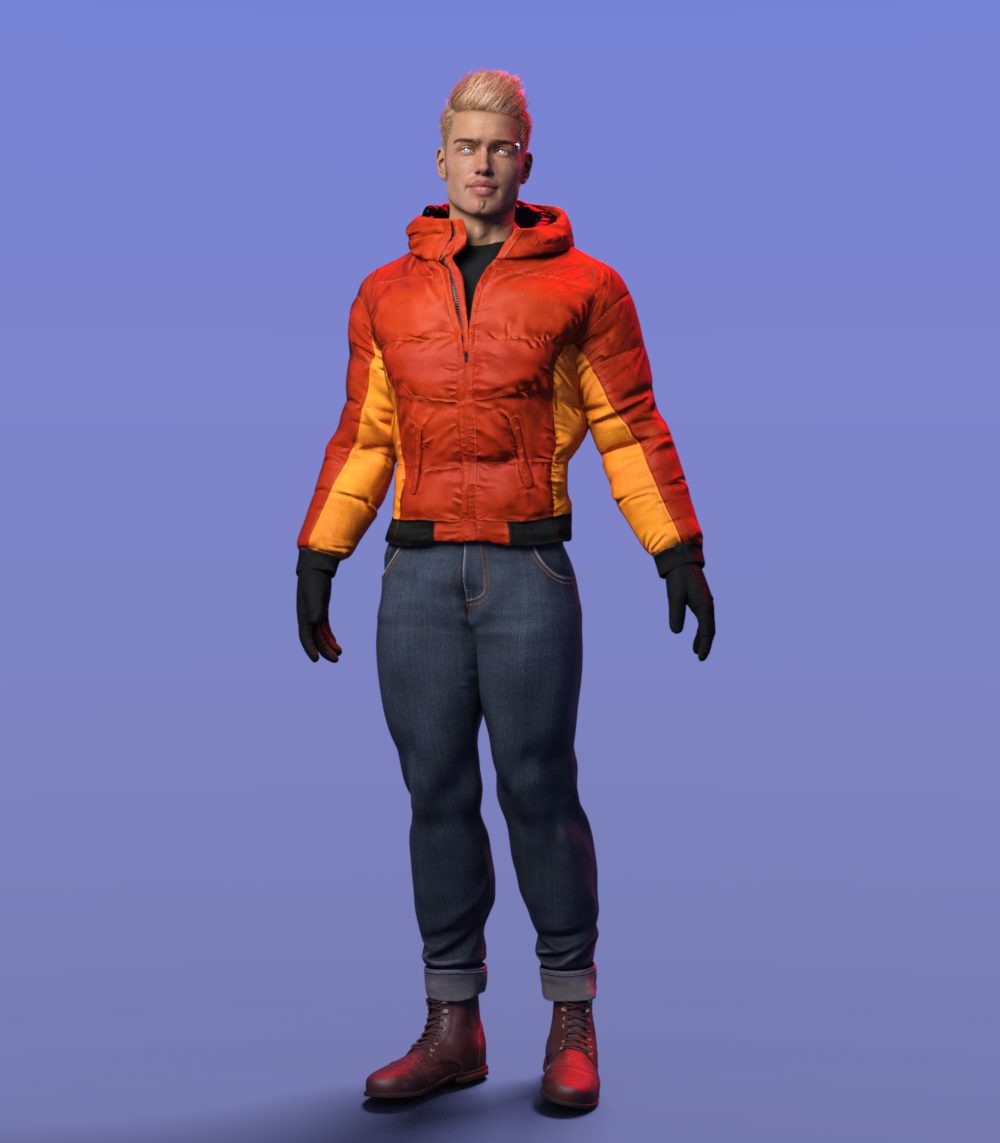 Okay, on the subject of women's clothing for men, here is Ion's Winter Parker for G8F fitted to Boyd over the Strictly business jeans and shoes, gloves from the winter clothing set and t-shirt from fabulous fifties set. I have to say the parka, looks pretty good on the men. It does not have morphs, though, so I had to use fit control to add a waist expansion and expand all option.
