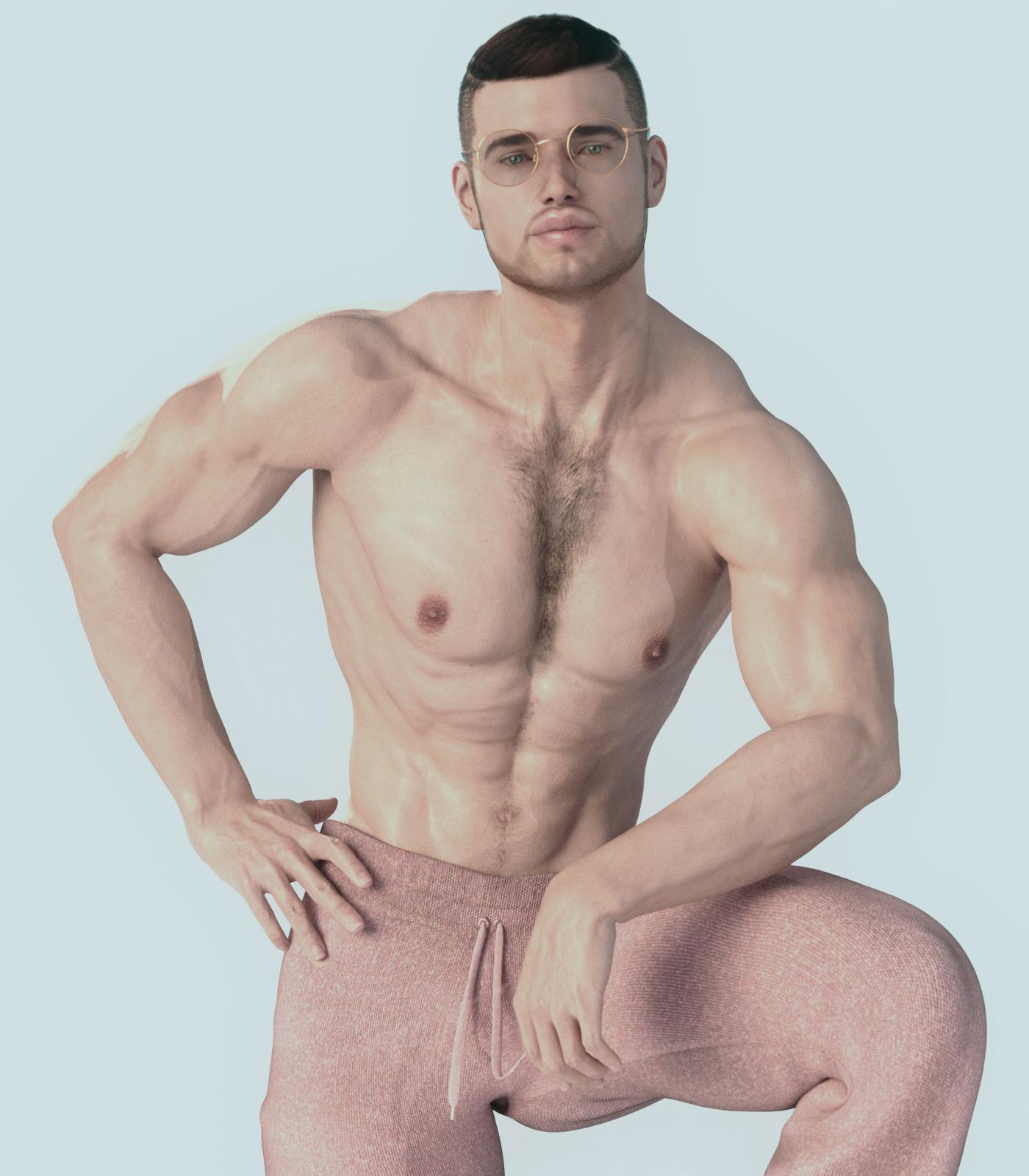 This is Haru. Another great-looking guy! He comes with facepaint, tattoo, bodyhair, makeup, and facial hair options.