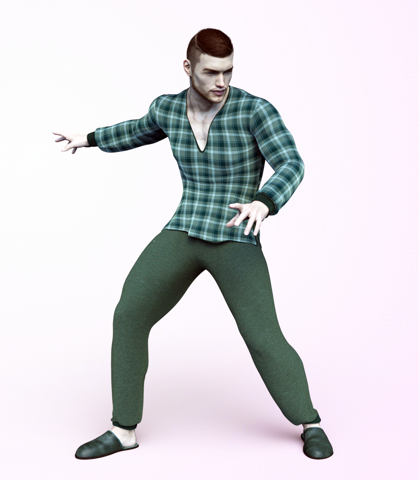 Well, wanted to test out the Dforce Pajamas. I have to say this is one of the slowest dforces I've yet had. First it failed to dforce 3 times with both Owen and Boyd in the scene. I restarted studio each time, to try to get it to run. Then I added dforce, saved it, and managed to dforce Boyd alone. However this was 10 minutes in to the simulation, and it was still not completed.