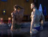 Boyd and Owen the hotsprings. I tried out the wet skin geoshell which comes with the wet hair product. It looked pretty good, but darkened Boyd's tan quite a bit.