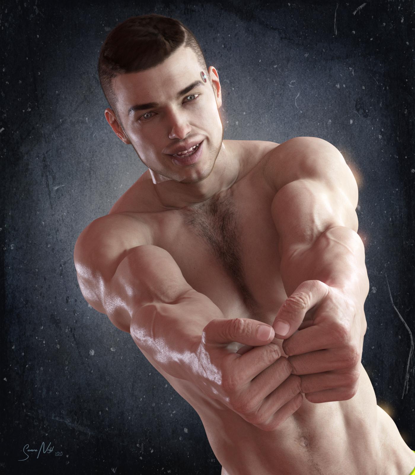 Don't think I've seen that before and certainly couldn't think of a use for it -- outside of a Beach Hoola Vicky --until now. Interesting. Lights and backdrop go well together, I must say. (I still kinda suck at lighting, though not quite as bad doing it in Studio as Poser.) Very nice overall. What outfit is that he's wearing?