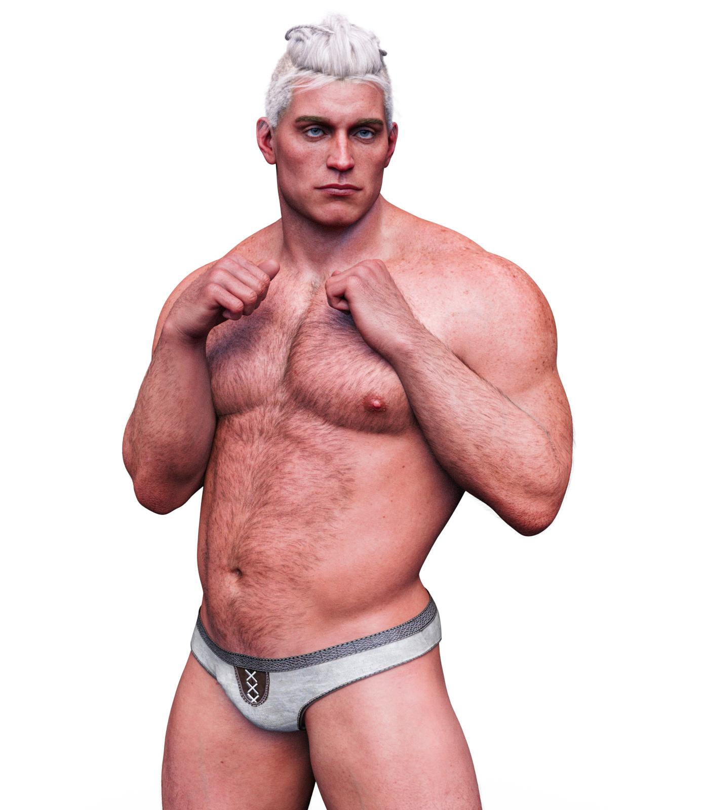 Here is Kjaer HD. He's pretty much a barrel shaped guy, and I confesss I find his blockiness somewhat of a challenge. He tends to look for lack of better word- a bit stiff. his musculature looks toony and odd to me. He has nice skin, and realistic body hair options, but I don't really care for this shape.... Too much.