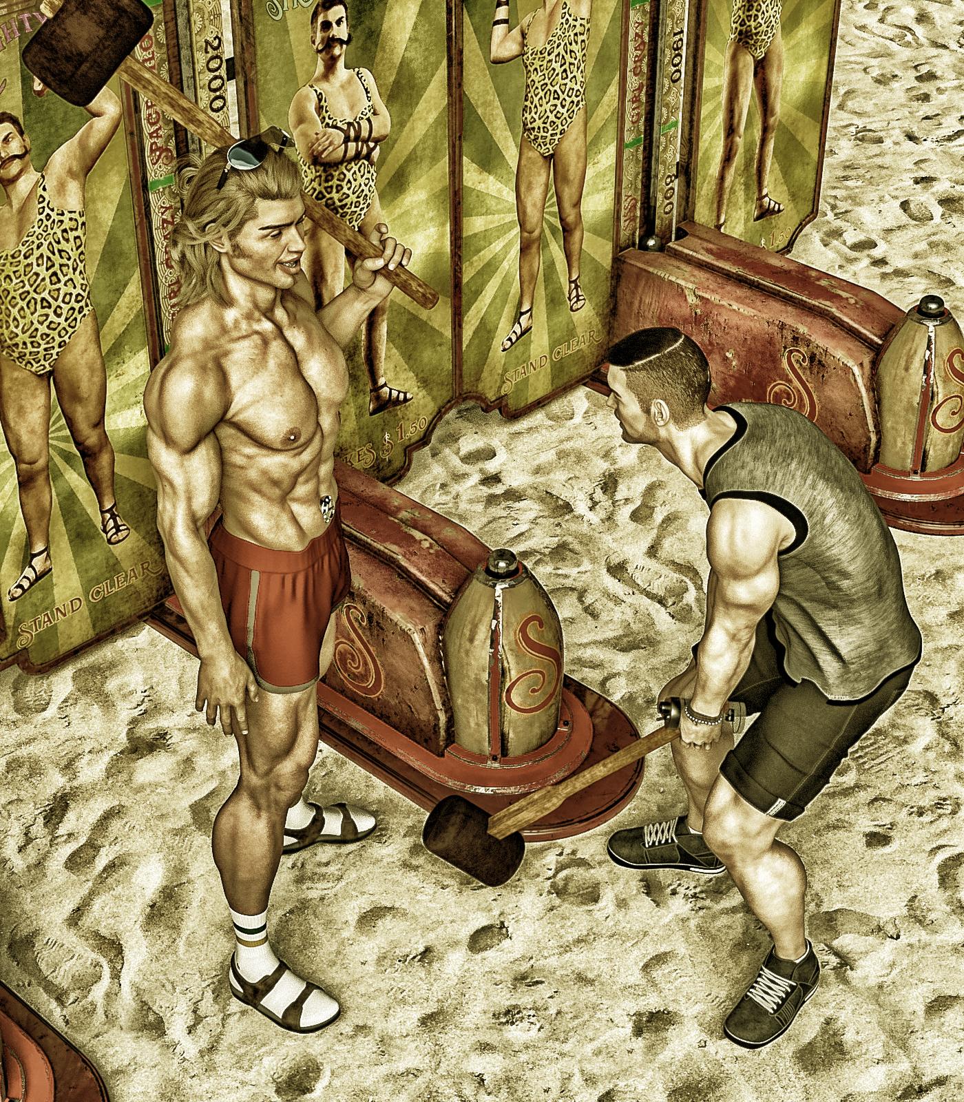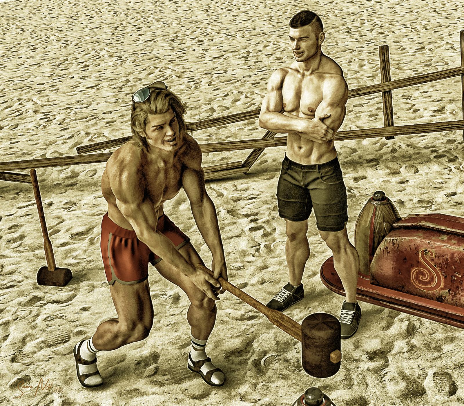On the subject of new male releases, here is Cisco by Kaos 3d. Cisco has Soto's Maxx's hair and beard, and sits on a lifeguard chair from Poser World. he is similar to Maxx, in that he is a big guy sort of Bara style. The rest of the content is kitbashed from beach sets sold here.