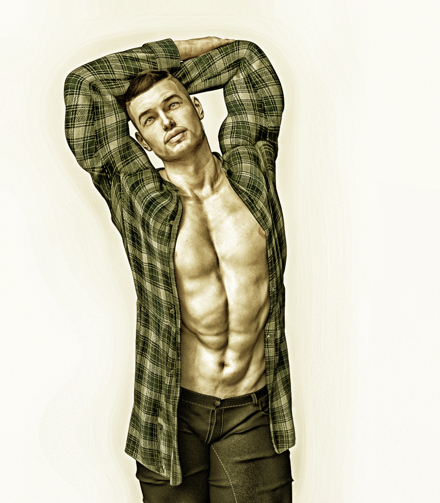 I stripped ghost Boyd of all his clothing, body hair, and implants, and even his goatee. I then reshaded him a ghost color, and his hair and clothing. The included shaders are meant to cover hair, but I could not get it to take on his eyebrows, goatee, or body hair, or even a bikini. I discovered; they don't do well on shaded products. I opted to remove most of them- you can't really see them anyway. I also recolored Matthew hair with its default textures, and then the shader took it.