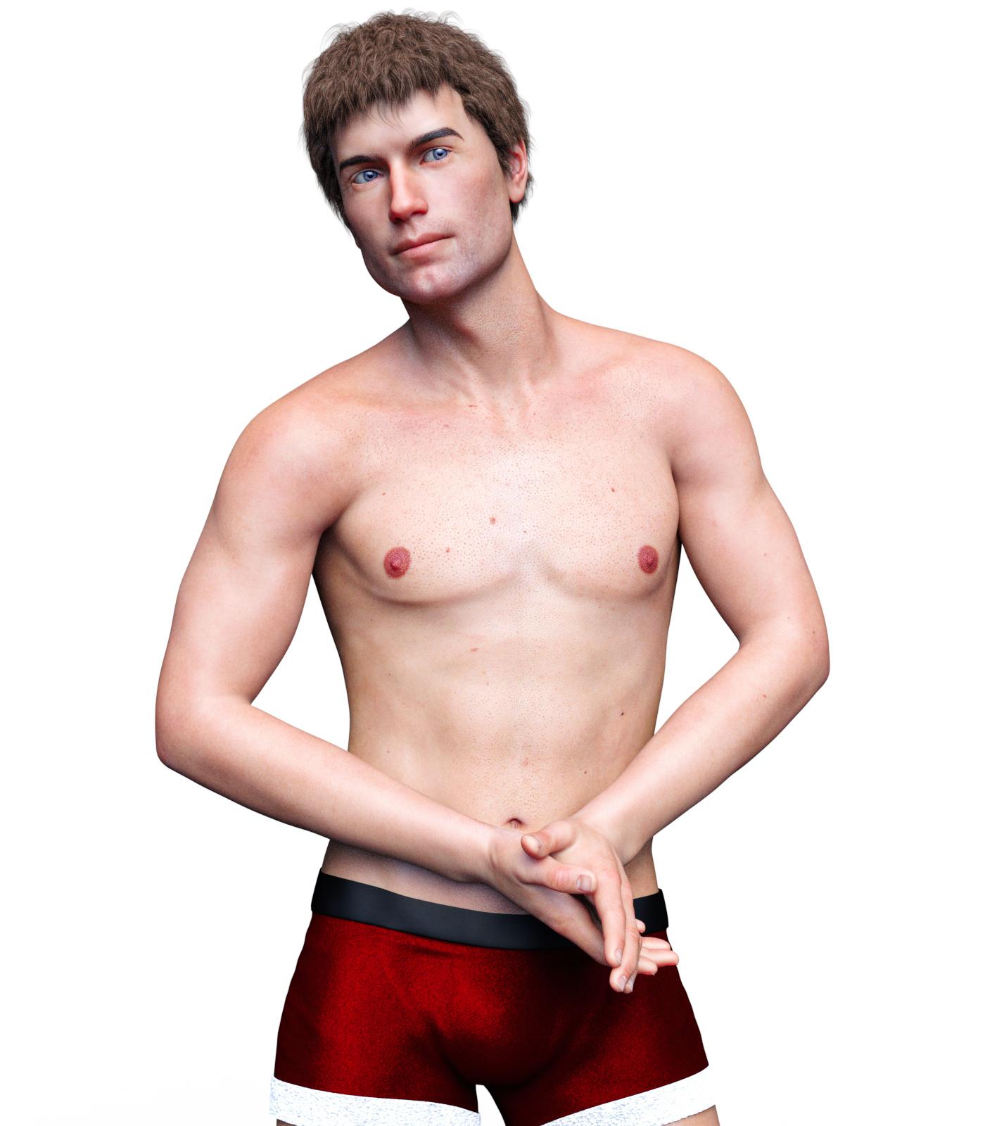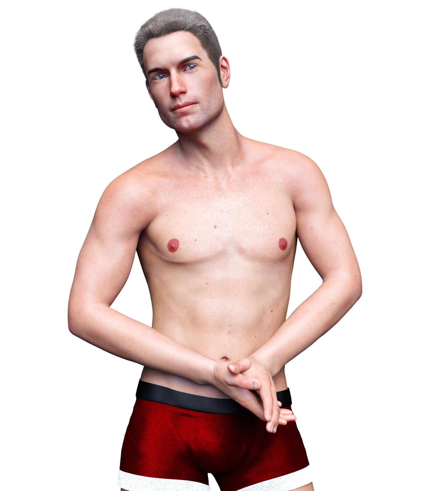 He includes the usual options, including this lighter skin option which I prefer. His preload does not include eyebrows or his beard, so make sure to go over to the CynderBlue folder and get those out. I really like the lighter skin option- mostly because the baked in leg hair and chest hair are less obvious. The sculpt I think is one of my favorites. I like his very slightly slanted eyes. Quite handsome. I definitely would pick him up- if you don't mind the baked in hair.