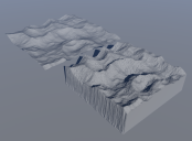 In an original way. I put the pyramids of Bryce primitives in a certain way, so that they resemble mountain spurs. I adjusted their position in space, slope and size. Then made a render in the window with equal sides from the top view, using the "Altitude Mask". I saved the pictures, then I loaded it into TE and applied the "erosion" function (or maybe some other functions, I don’t remember). I passed the resulting elevation map through the filters in GeoControl2 and again loaded into TE.
