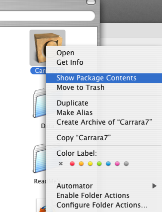 If you have no option but to do it manually, and you're on a Mac, you may need to navigate to the C8.5 application icon and either right click or control click to bring up the contextual menu. From there, choose, Show Package contents. This will open a new window. Open the Mac OS folder to display its content.