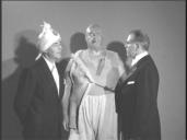 Two women are sitting at the front of the table close to the Swami. I added a pic of the Swami eyeing the fur coated woman sitting to his right.