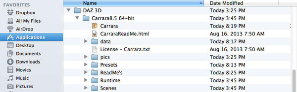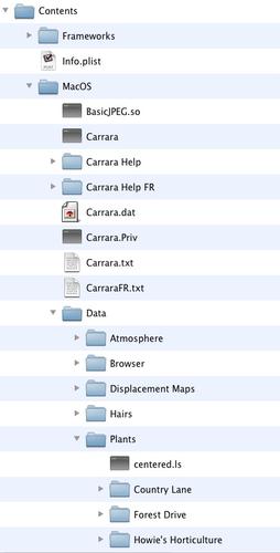 Right-click on the Carrara app, choose "Show Package Contents" and find those folders within the program.