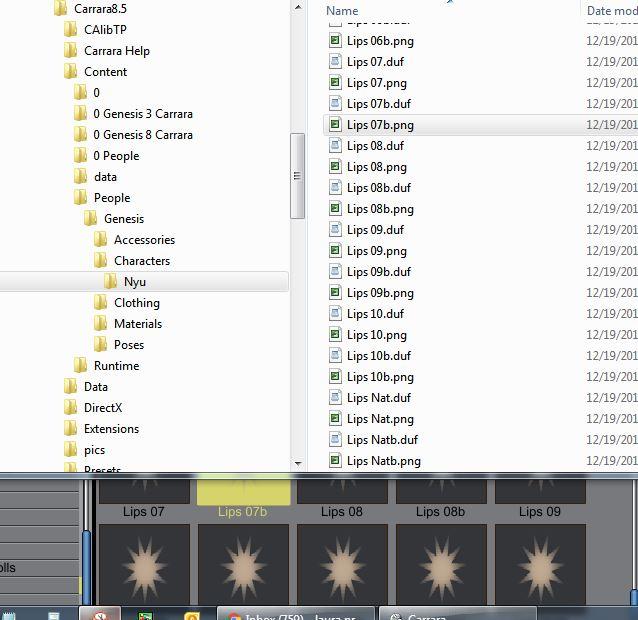 i dont understand why the makup pngs arent showing in carrara content folder pane. they all duf files ??