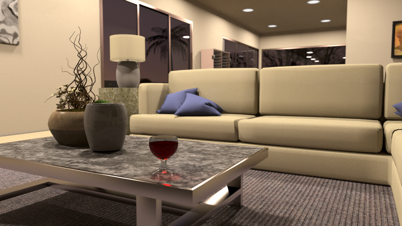 ...and another quick one with only ceiling emitters at diffuse depth 2 specular depth 1, default rendersettings (8x8 PS)