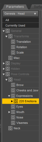 I've uninstalled and reloaded both the 220 emotions and DAZ Studio 4.6. They just won't show as sliders.