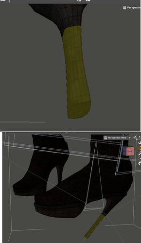 Just select the polygons and hide the heel, for example, if you are doing a front shot, the bottom of the heel just needs to be hidden. Side views, this won't work.