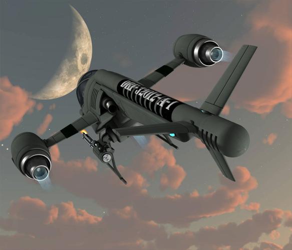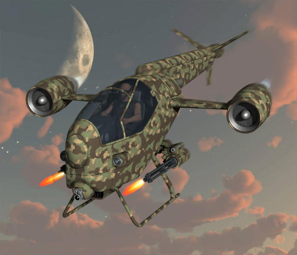I picked up this cool little vehicle in the .99 cent science fiction sale and think it's pretty cool. It is single pilot small helicopter with 2 main guns, turbo jets, with included poses for a single pilot.