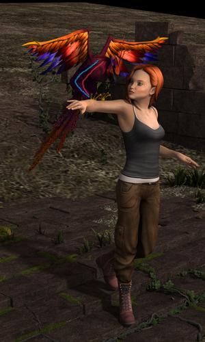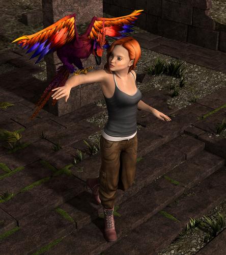 Okay, so far as the Phoenix, his head needed to come forward and down more too, so I stopped the render and fixed that. I also moved the head so the feathers from the wings wouldn't be near the face (the darker purple ones) since the beak is dark. This fella is fairly easy to pose, it is one you may do better with click and drag. The render will be done later today, it's 4am and I am headed off to slumberland. :)