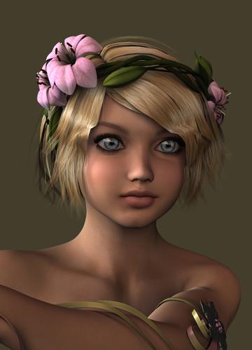 The headpiece and arm band are Mada's Lilly Nymph. http://www.daz3d.com/lily-nymph-for-genesis