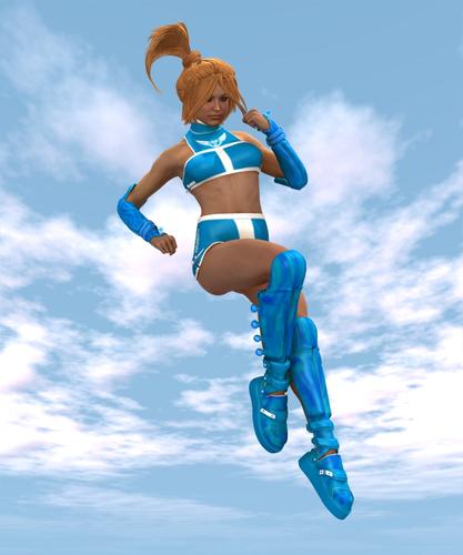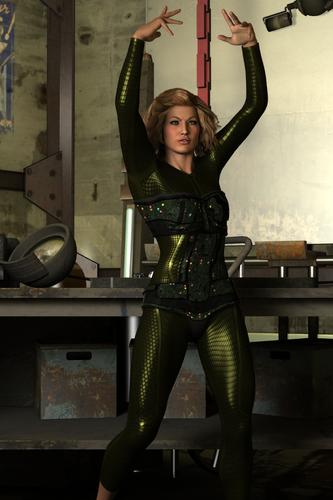 I bought Anti Gravity because I fell in love with a cool render someone did of the lime green version of this outfit. From the front it is actually a fairly modest (by 3d standard) shorts and shirt outfit. It contains gloves, outfit, boots, and helmet in several different colors. From the back it rides a little high for my personal tastes. I don't use the helmet, but that is because quite often, I find myself focusing on the character's face more than the body and I don't like to render the face covered, and well, the helmet isn't my favorite- (you can check it out in the product view).