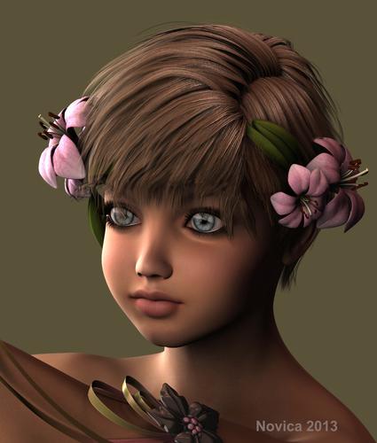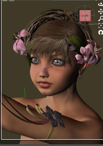 Here's Shae, had to touch up the hair because the wreath thingie didn't look right but I don't know how it was supposed to look, not to mention I walk in the door and find out I have 15 minutes to be somewhere, so did the hair in five minutes. Rendering another one with Nordic Hair. I wanted to post this so you can see what I mean about the skin materials and how she looks with shortened eyelashes- less like a doll and more like a real kid. It's good we have both options!