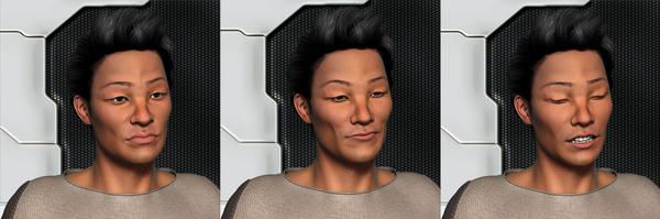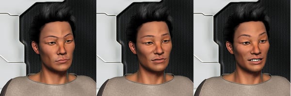 The poses are easy to apply and use. Just click on the head and go to the Pose section to dial in a pose. You can dial in a little or a lot depending on how extreme you want the facial pose.