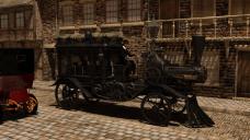 Okay, this is still just a WIP, but slowly getting there. Steam Hearse, with an opacity map I made to hide the roof ornaments, and four dark coloured planes behind the glass windows to hide the interior; the steam around the chasis looks okay, but the smoke needs a lot of work.