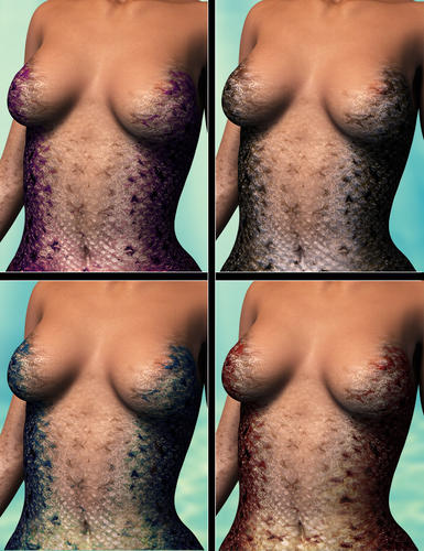 I very much like the transition between the Mertails and the body, where the fish scales actually become part of the upper body :) Looking forward to send her diving around in the coral reefs :)