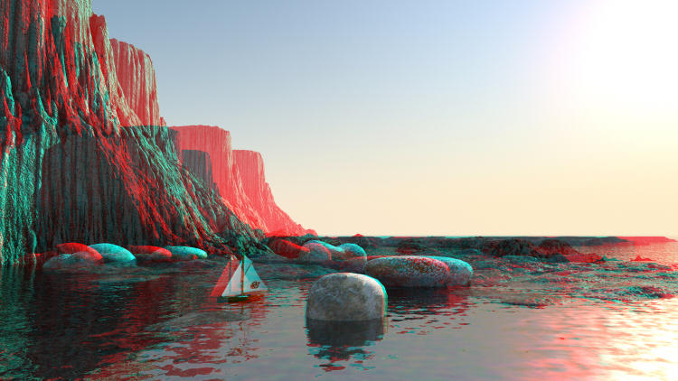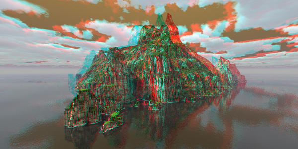 I find many of the images take a bit of getting used to. Here is an anaglypherized version of one of the updated Bryce 7 Pro scenes I provided for my first tutorial product East Coast HDRI