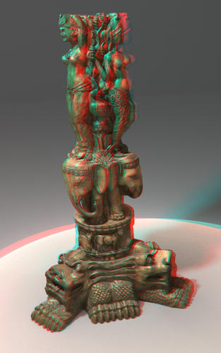 On the anaglyph version, sorry; while I love your previous anaglyph renders - simply incredible - this one doesn't do it for this one's eye (perhaps, it's due to the monotonous tone in the colour, which you've correctly captured?). I'm supposing that certain coloured images , or materials, cannot be correctly be re presented in 3D anaglyphs.