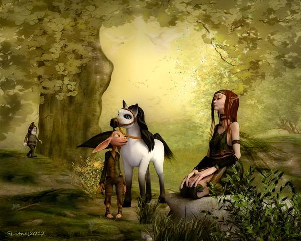 Speaking of Nursoda stuff....three of his characters along with Diamond. The background is by Jane Eden who has a nice painterly touch. I added the AS Rock and a bunch of misc greenery.