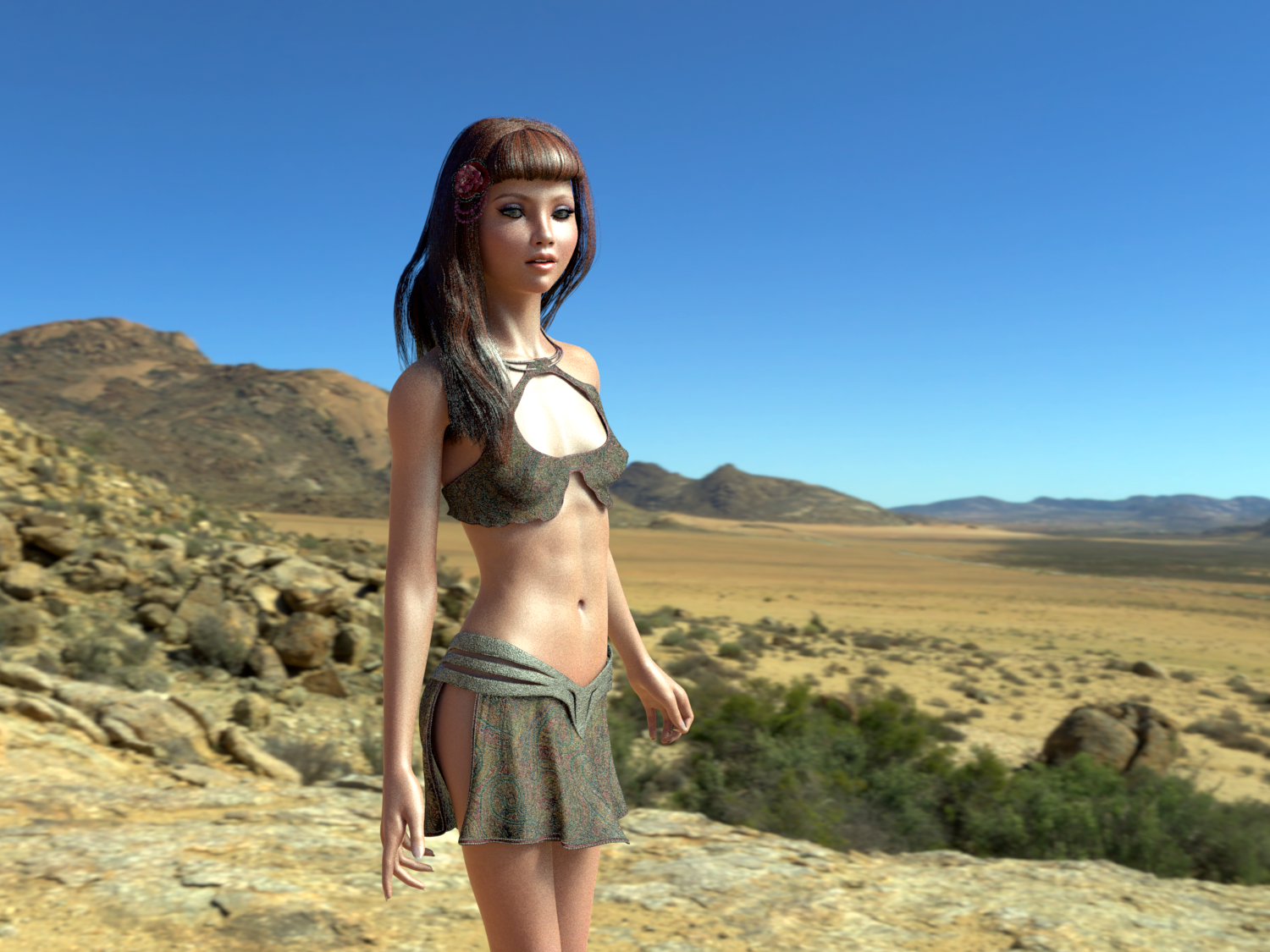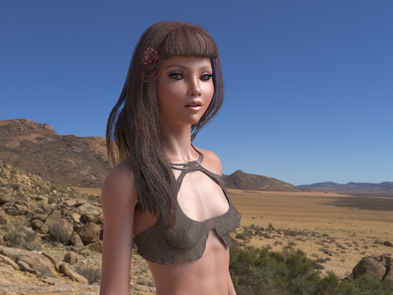 I've been fighting with the hair, can't really get it to look the way I want, this is her current stateindecision. Could be the HDRI too, it's very yellow. I postworked this a bit to fix colors/gamma: