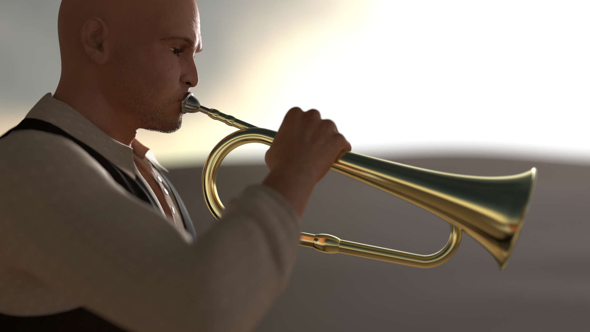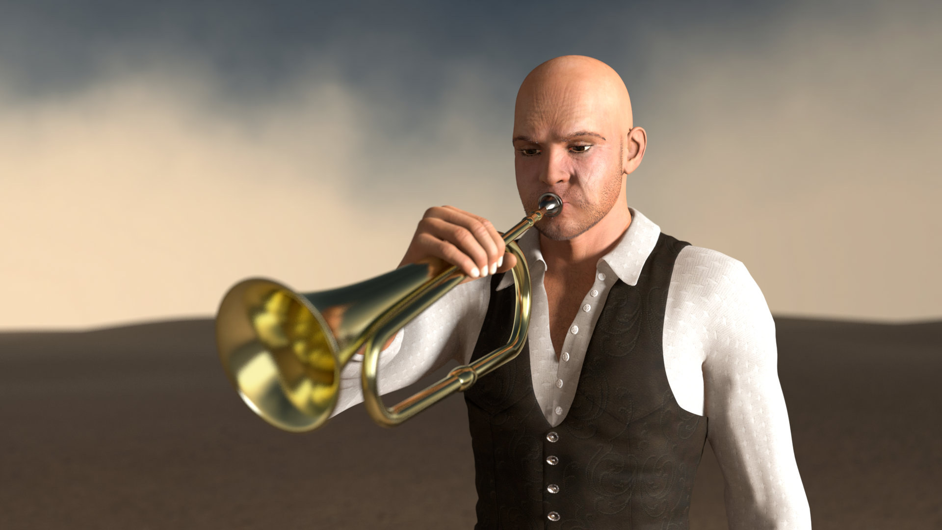 Is there a "puffy cheeks" morph?  Also maybe use a lips pucker morph to create the "embouchure" required to make the instrument sound.