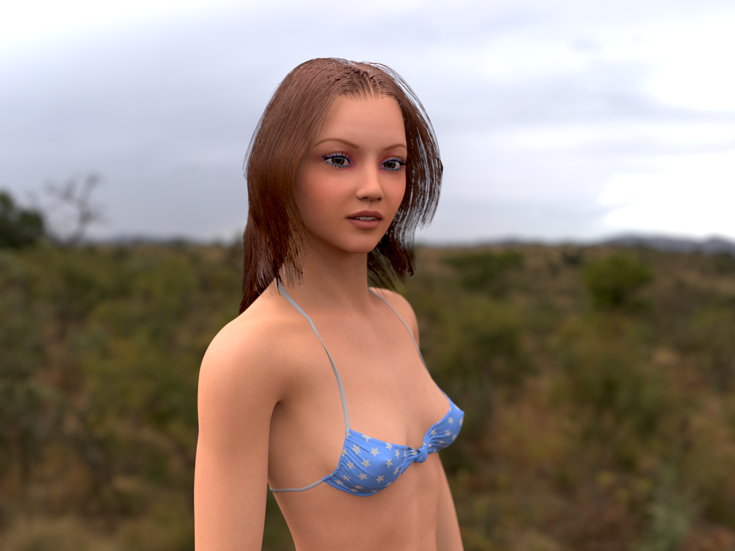 I might as well post my latest GBhair to .obj to conforming - experiment... kept the hair at base level to keep rendertimes down, shadowsamples 512, skin shadow/SS-samples 2048/512.