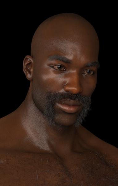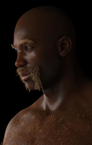 North hair with less bump/displacement (progressive testrender), 1024 samples: