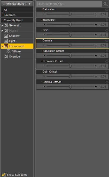 Environment dials will control the respective properties of all surfaces with the environment shader applied. There's a separate control for diffuse as well.
