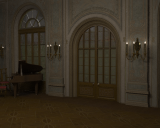 This is lit with an outside HDRI (which isn't contributing much due to the windows), the wall and chandlier candle points and 44 spheres randomly instanced near the ceiling - good enough for now while I locate problem surfaces.