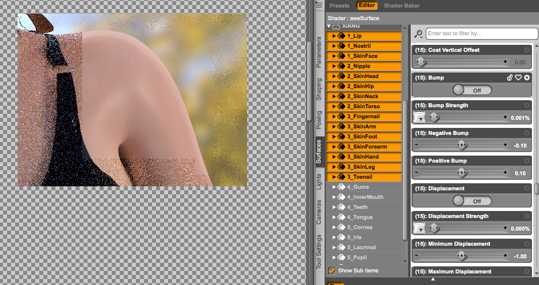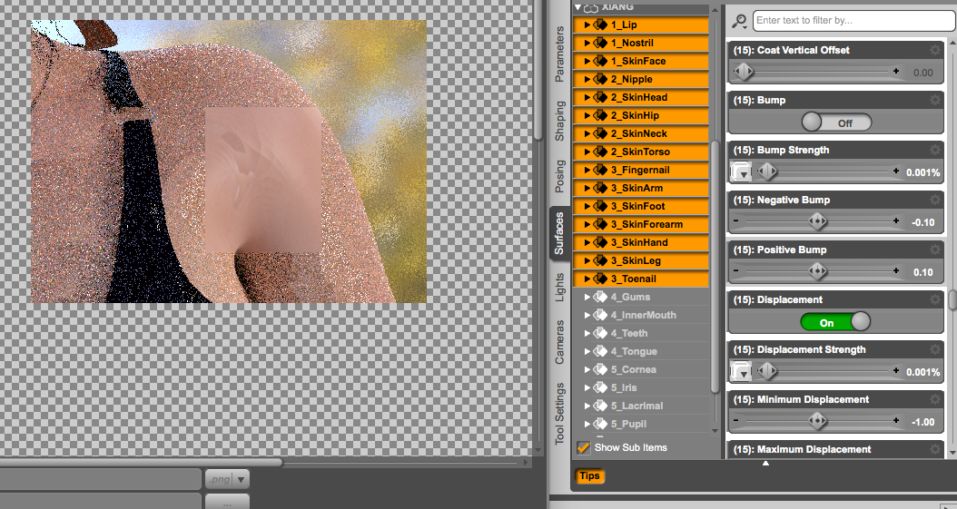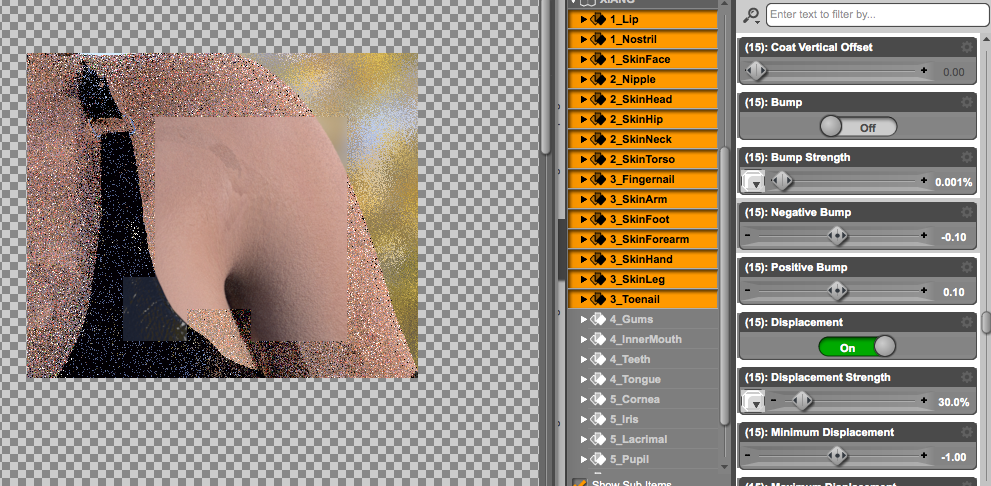 I'm in the process of testing skin settings and wanted to render a simple portrait with a HDRI + an area fill light...running out of ideas on how to solve this. There were other areas with the same issue. The bump maps are fine, I've examined them closely. Same maps are inserted in the displacement channel.