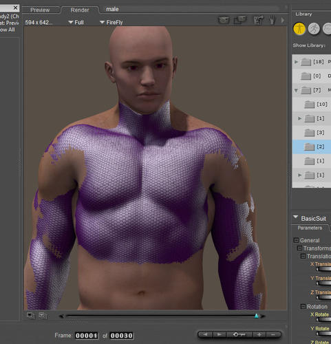 For anyone interested in knowing if the Genesis Supersuit could be converted to .duf and imported into Poser, or wondered how it would look, here is an example of the suit, in Poser, on Freak 5.