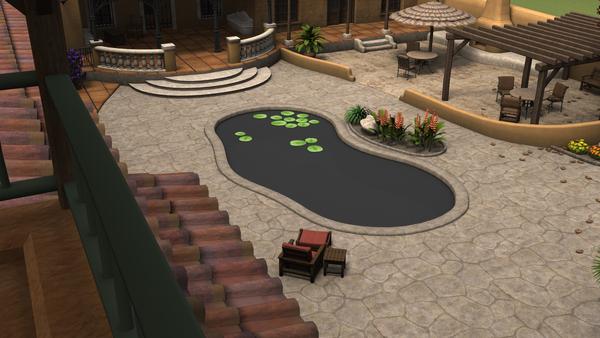 It happened the same as last time I turned off all the sections and it showed back up in the render......I wish I would have saved the scene but I did not....Ok back to the question about water to make it look like water....my swimming pool to my new abode above ...what would you suggest....I have been playing with settings all day to no avail.......the grey with the lilly pads....???? Hello Mr. Big Blue Helpy Guy...are you there????